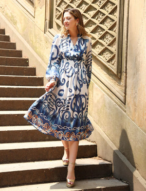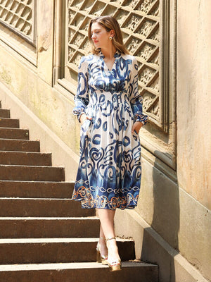 Floral print elastic waist v-neck dress