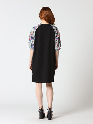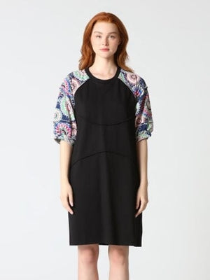 Floral Print Sewing Sleeves Sectioned Mini Dress