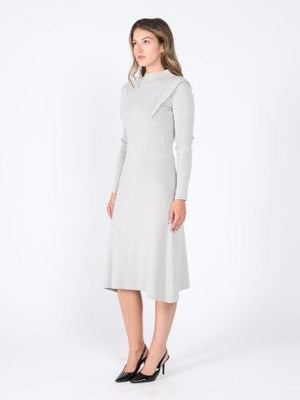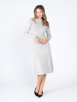 Knitted long sleeve elastic waist maxi dress