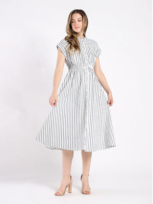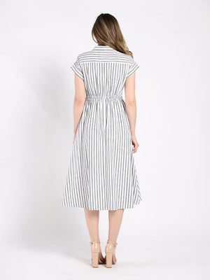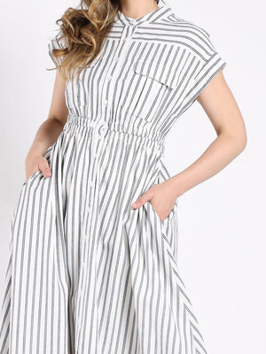 Short Sleeve Striped Button Down A-Line Dress