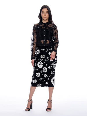 • A fun take on a denim jacket! This see through lace denim jacket pairs perfectly on top of any shirt.