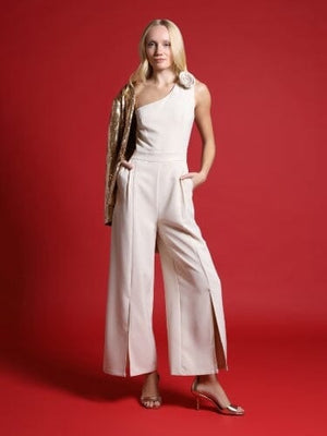 One Shoulder Flower Detail Wide Leg Jumpsuit