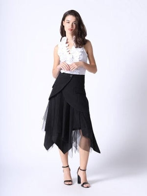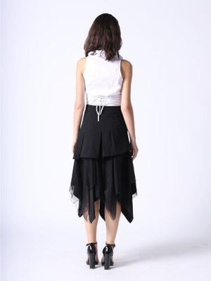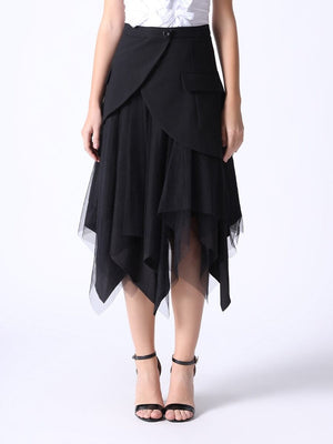 Mesh Contrast Asymmetrical Side Pocket Skirt