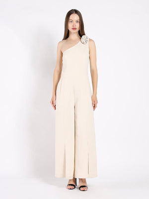 One Shoulder Flower Detail Wide Leg Jumpsuit