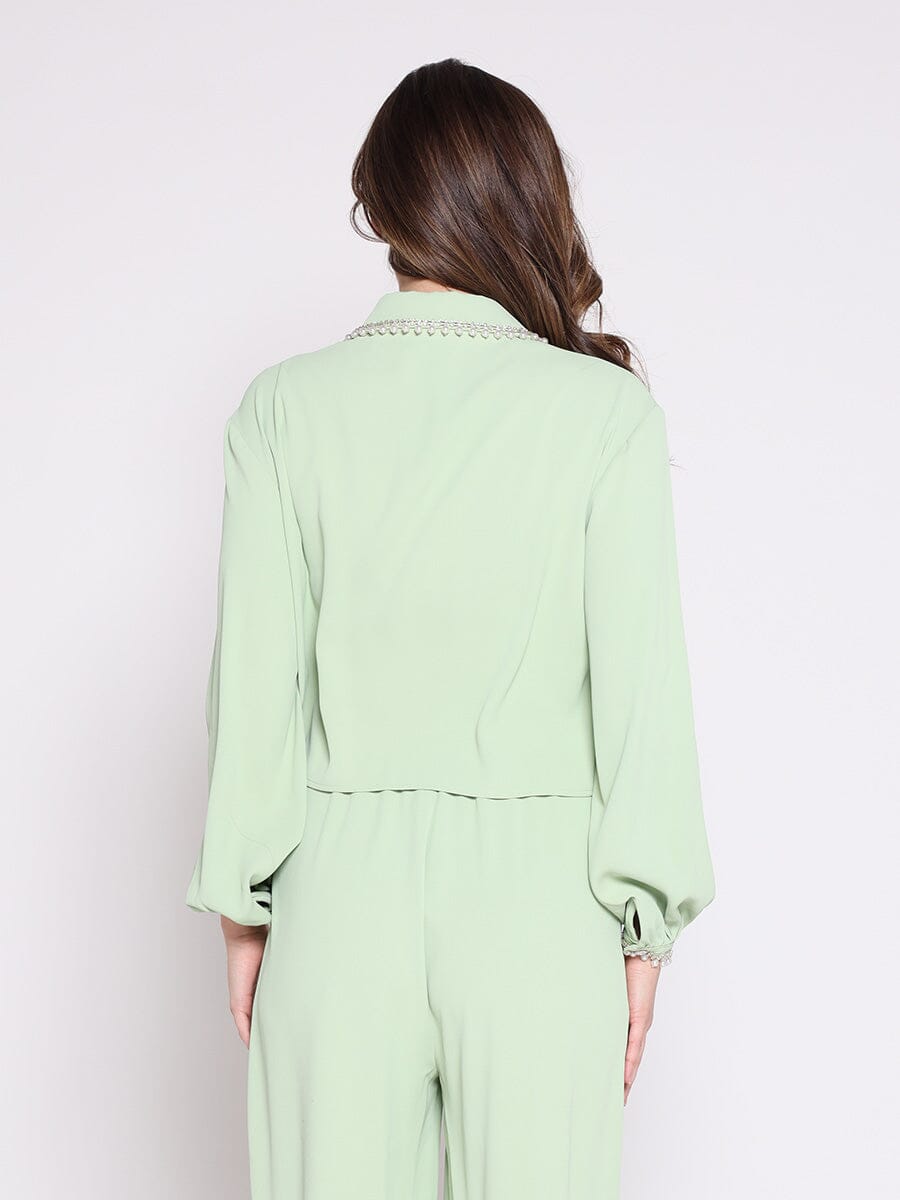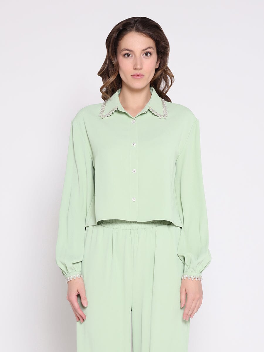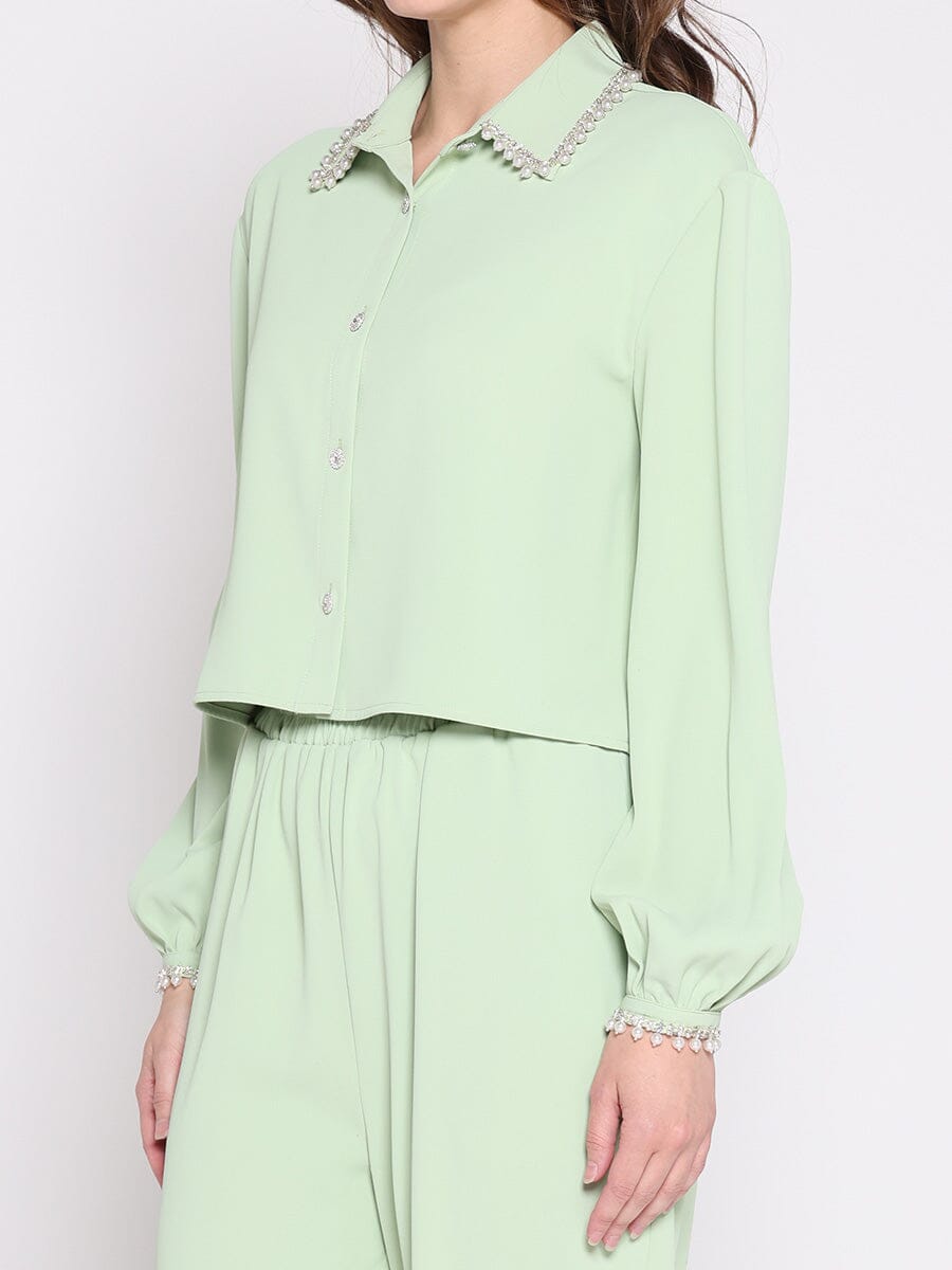 Pearl Beaded Long Sleeve Cropped Top