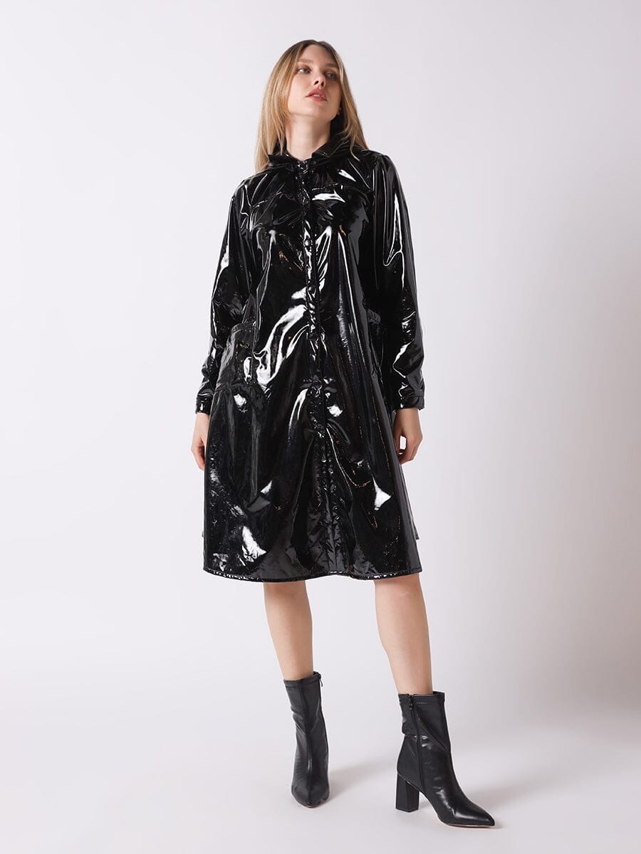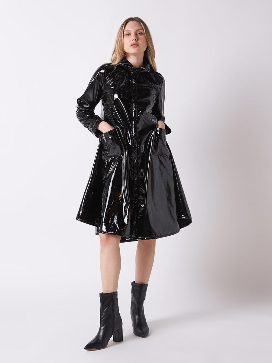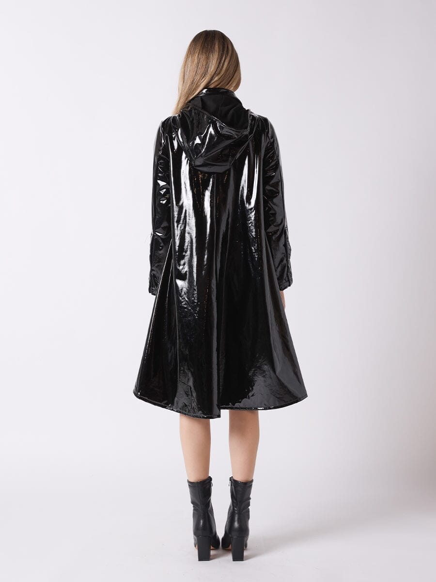 A-Line Button-Down Vinyl Jacket with Hood
