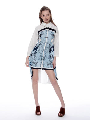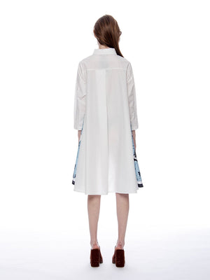 Contrast Graphic Loose Fit Asymmetric Shirt Dress