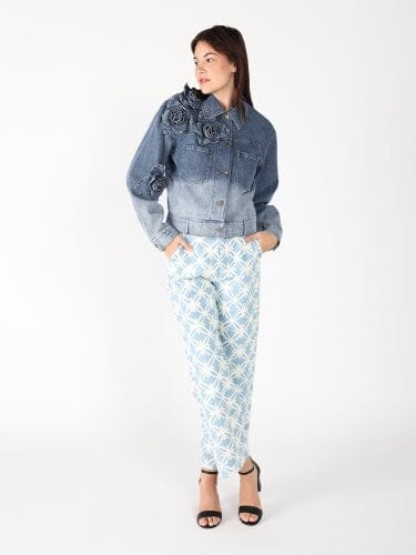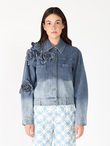Flower Attached Denim Jacket