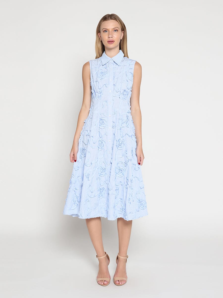 Lace detail sleeve button down A-line dress
