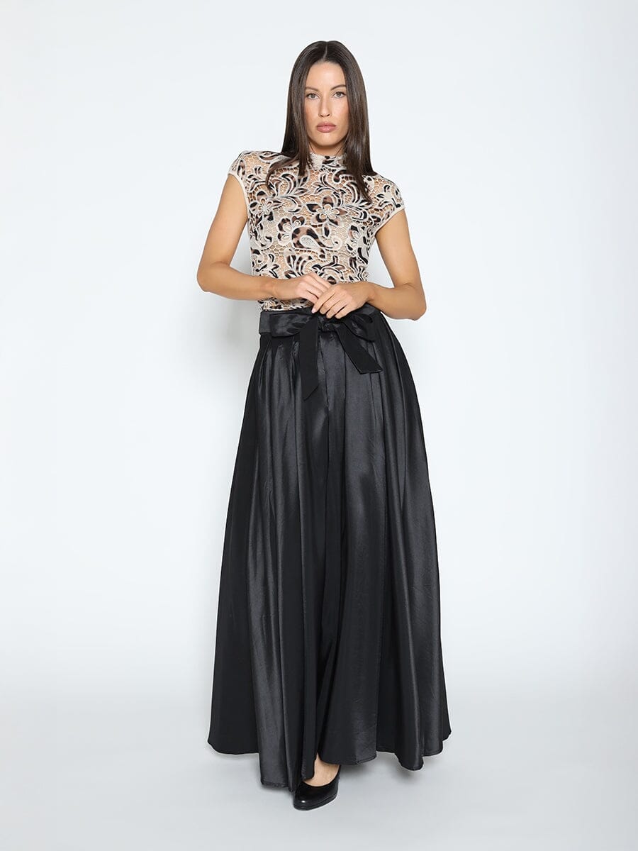 Lace Overlayed Cap Sleeve Mock Neck Top