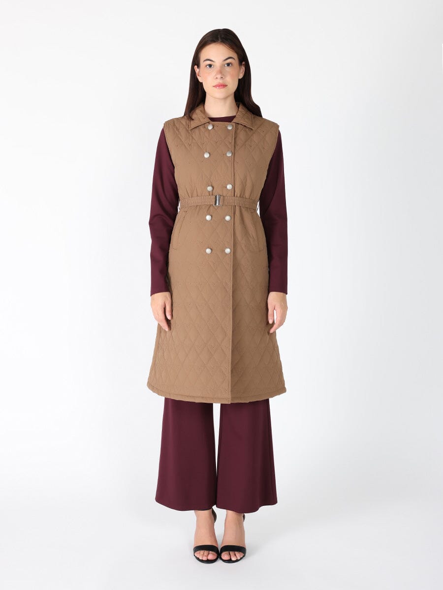 Quilted Sleeveless Belted Long Jacket