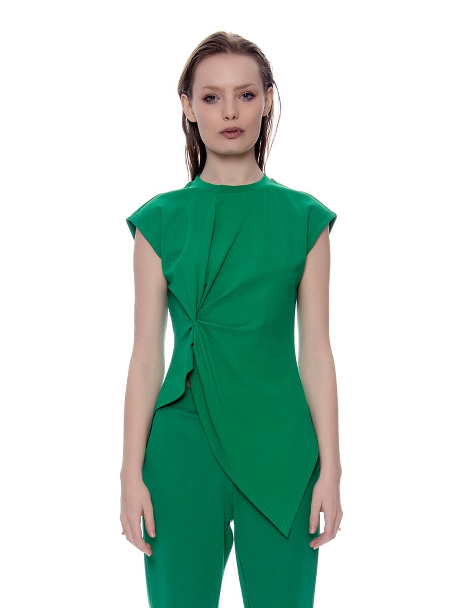 Sleeveless Pinched Front Sharp Asymmetrical Top