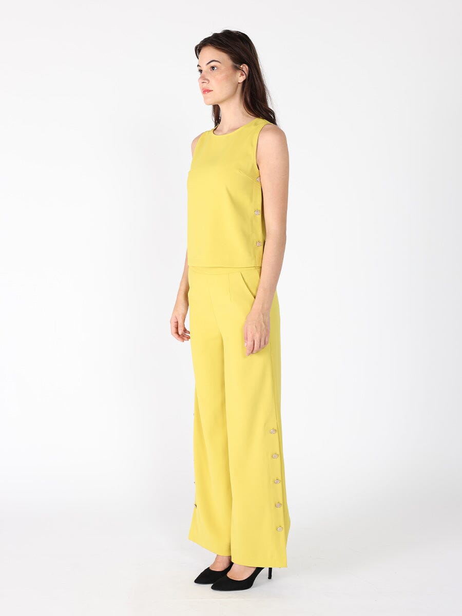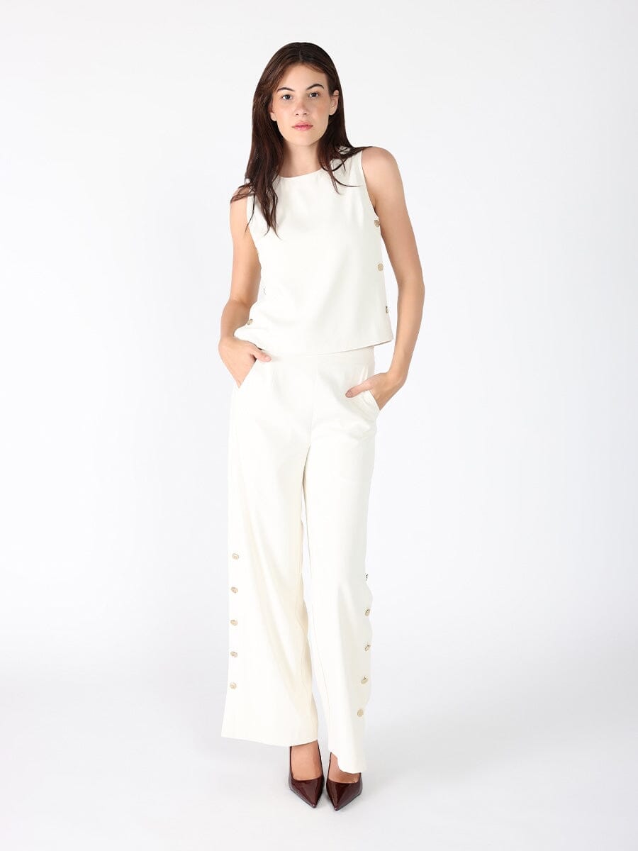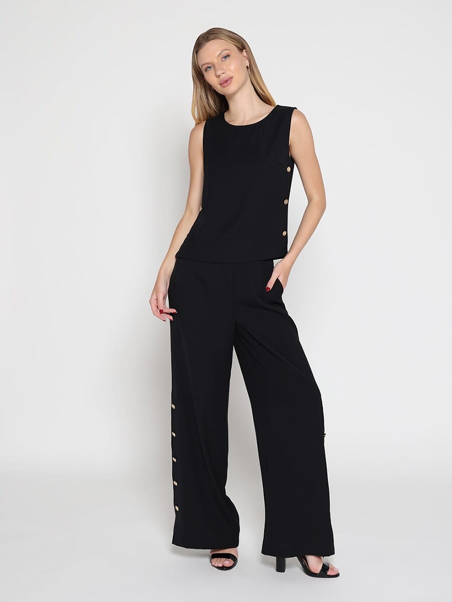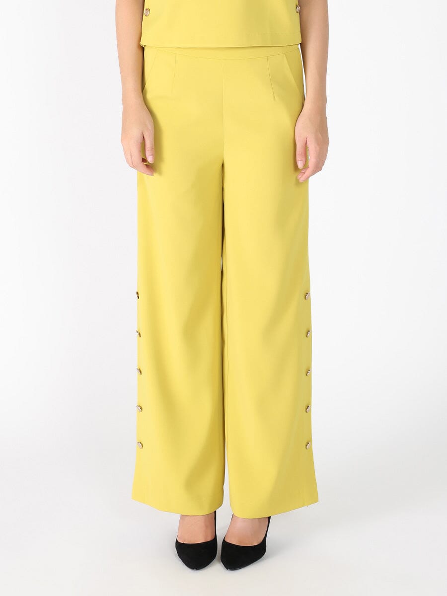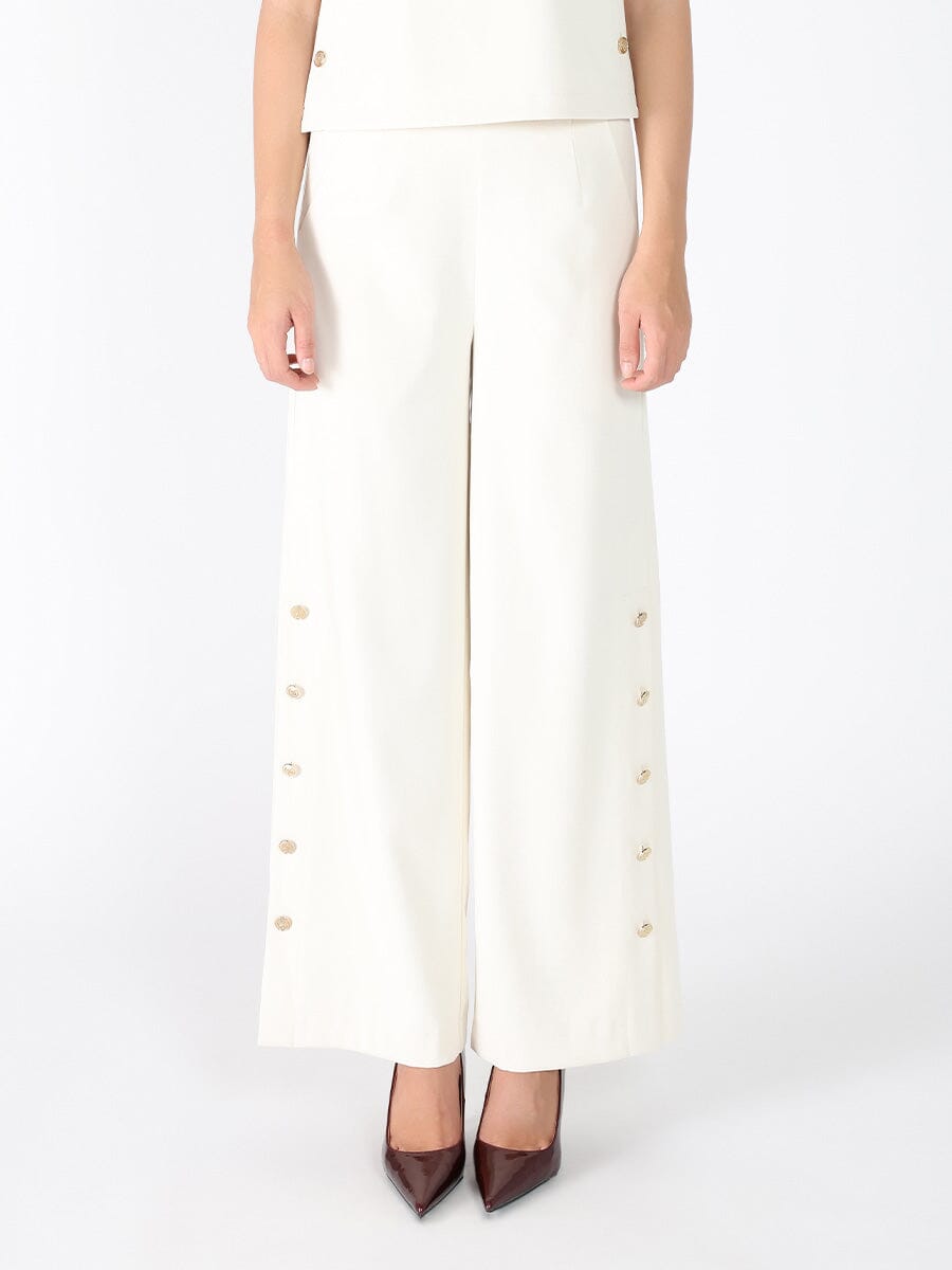 Wide Leg Half Button Open Casual Pants